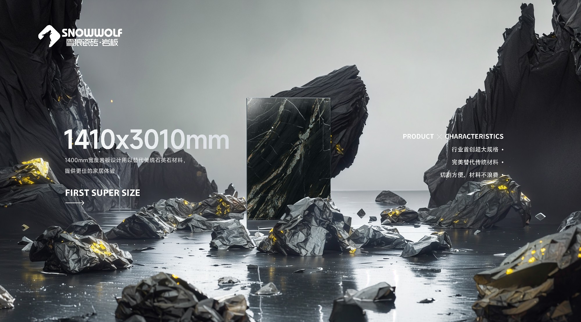雪狼瓷磚·巖板創始于2004年,擁有國內首屈一指的超薄/超大巖板生產線,是一家集生產、研發、銷售于一體的綜合型企業。 Snow Wolf Ceramic Tile Rock Plate was founded in 2004 and has a leading ultra-thin/ultra large rock plate production line in China. It is a comprehensive enterprise that integrates production, research and development, and sales.
